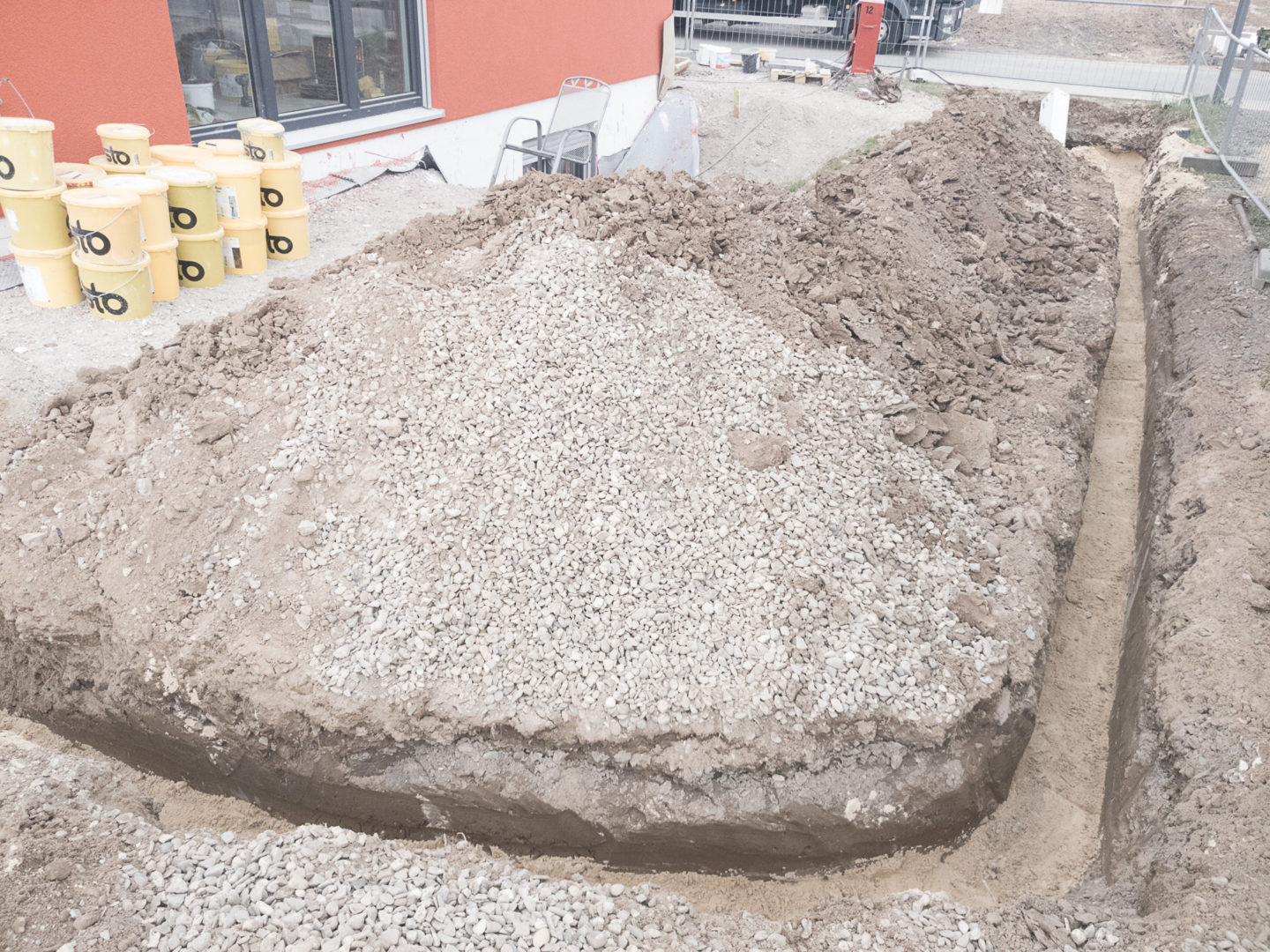 Also nix wie hin. Parallel dazu hat unser Erdbauer neben dem Graben für das Wasser auch schon mal den für Strom aufgemacht. Die Telekom muss noch warten bis die Wärmepumpe angeschlossen wurde. Bei uns ist das etwas Komplizierter, alle drei Versorger kommen an verschiedenen Stellen ins Grundstück. Und auch sind die Ebenen im Erdreich unterschiedlich. Herr Maagh weis schon gar nicht mehr wohin mit der Erde, abfahren Lohnt nicht, wir brauchen Sie ja wieder.